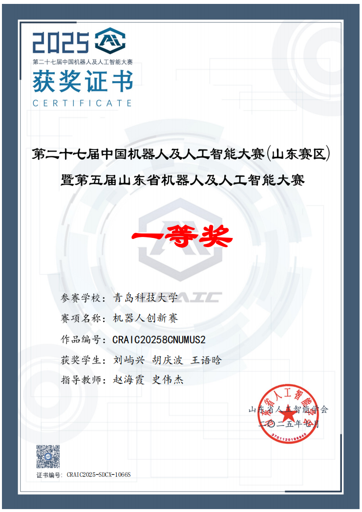 2025,第二十七届中国机器人及人工智能大赛(山东赛区)一等奖