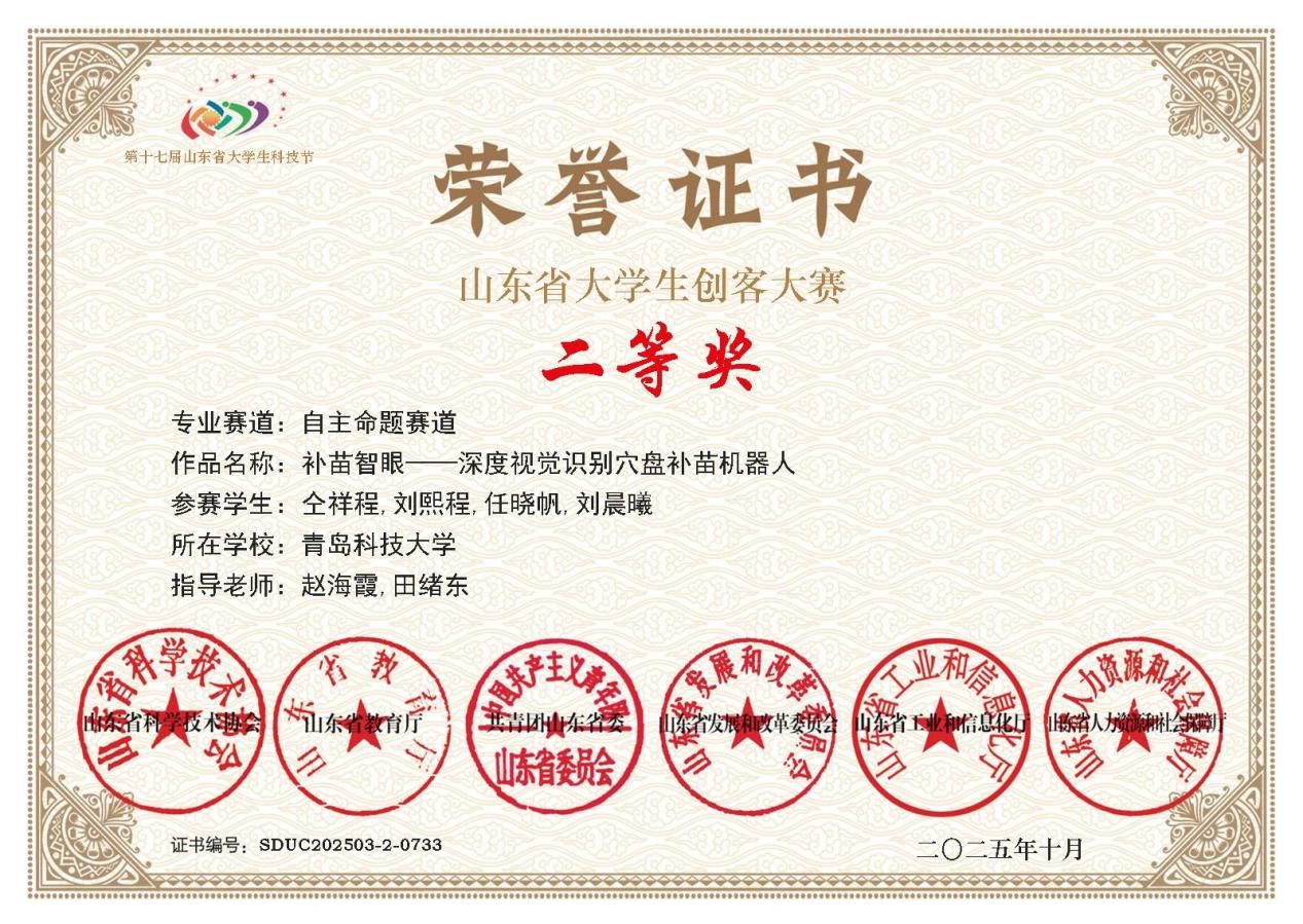 2025,山东省大学生创客大赛获二等奖