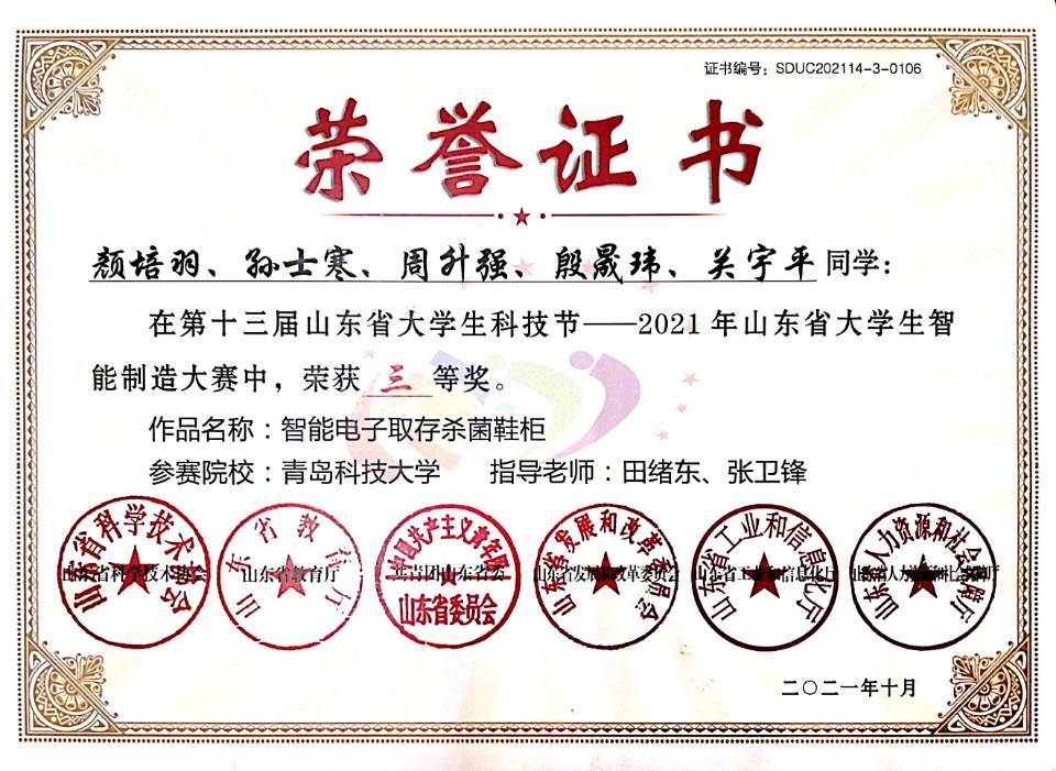 2021,13届大学生科技节-省级三等奖-智能电子取存杀菌鞋柜