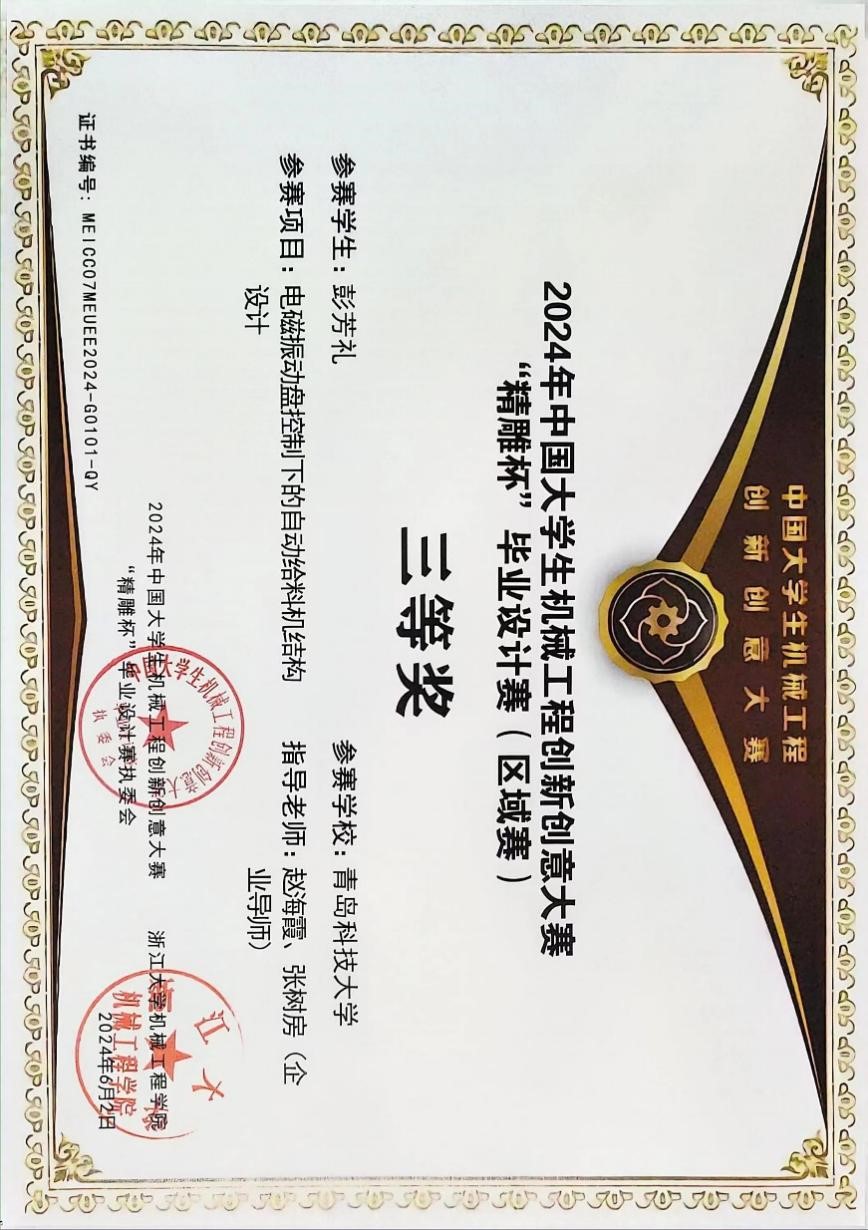 2024,第七届中国大学生机械工程创新创意大赛毕业设计赛道区域赛三等奖:电磁振动盘控制下的自动给料机结构设计