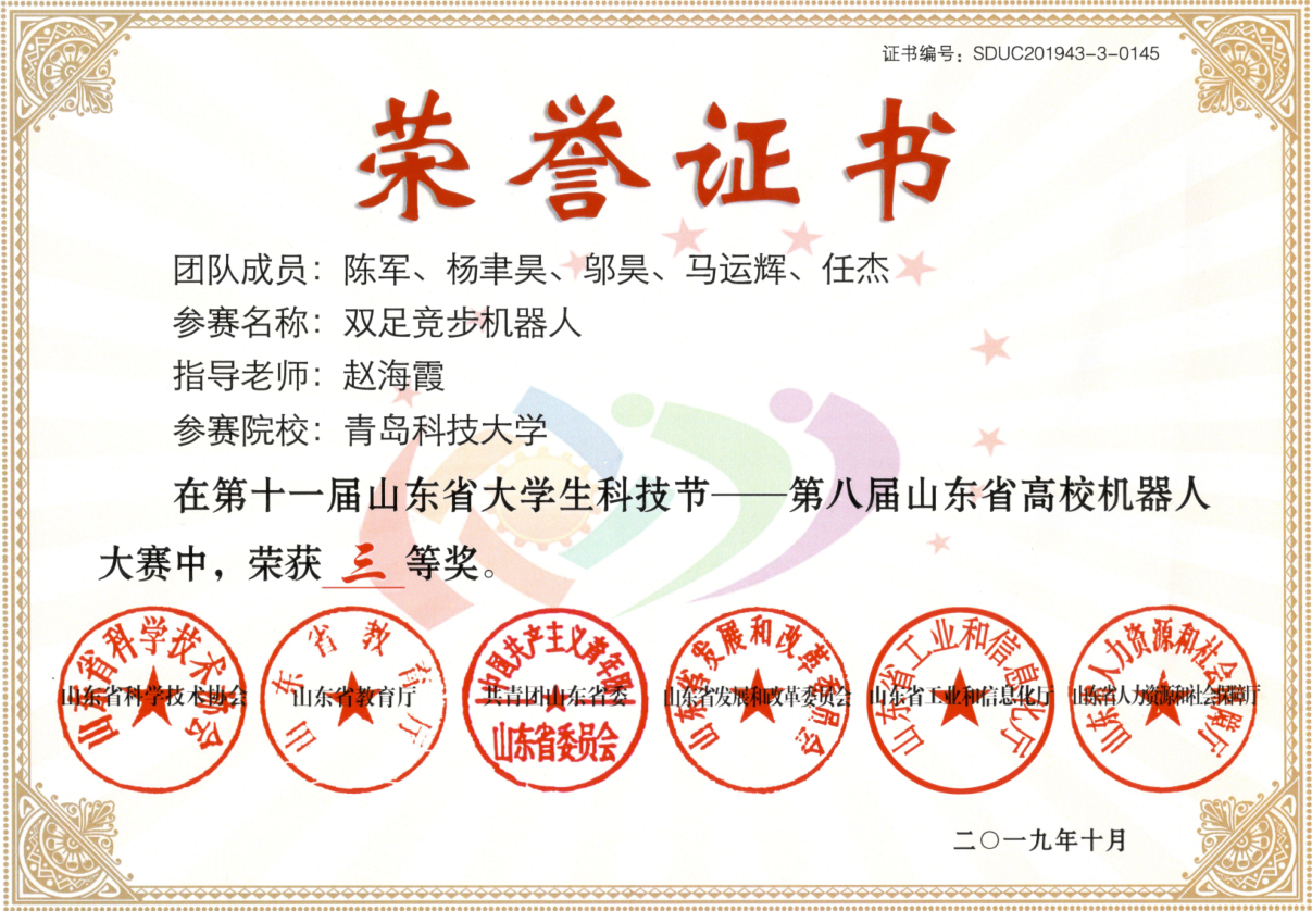 2019,第八届高校机器人大赛获三等奖:双足竞步机器人