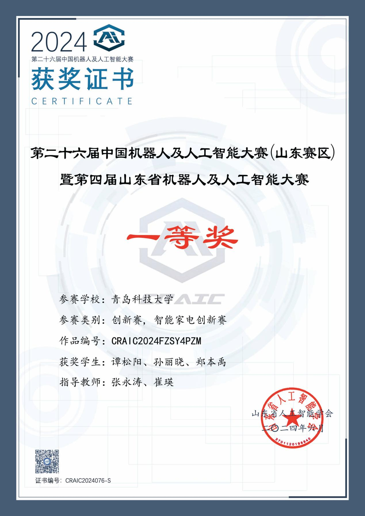 2024,第二十六届中国机器人及人工智能大赛(山东赛区)暨第四届山东省机器人及人工智能大赛一等奖