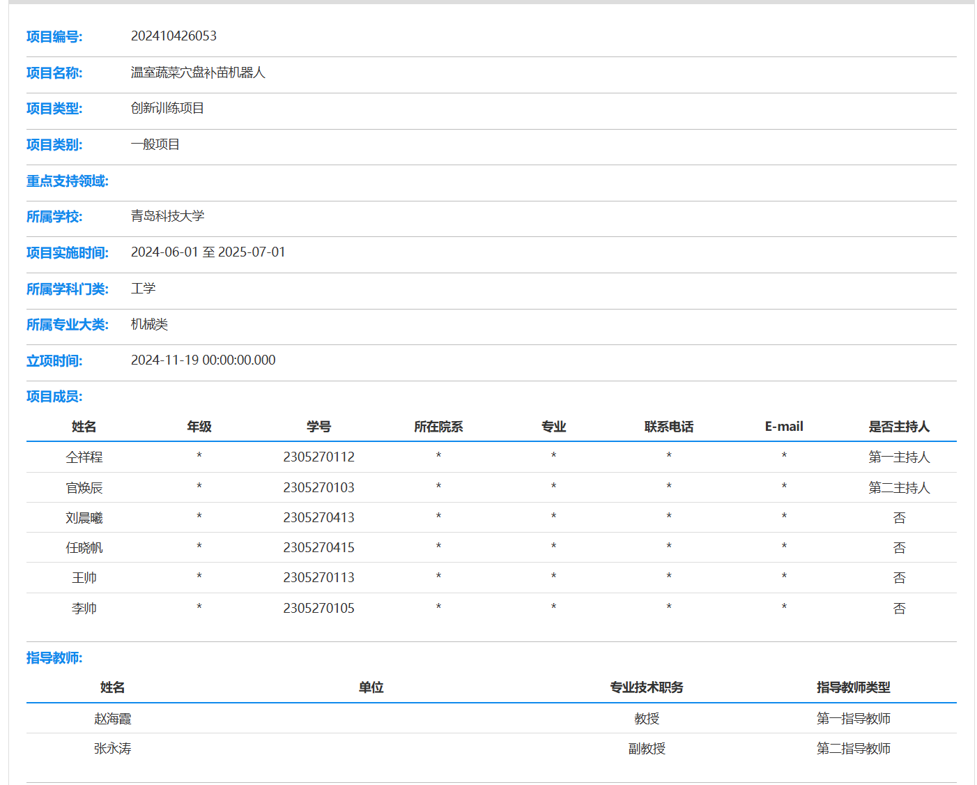 2024,国家级大学生创新创业训练计划项目:温室蔬菜穴盘补苗机器人