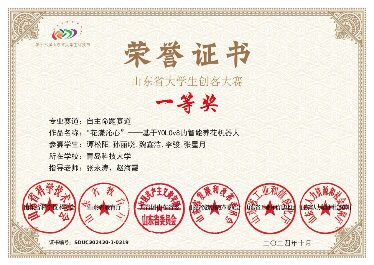 2024,山东省大学生创客大赛一等奖:“花漾沁心”基于YOLOv8的智能养花机器人