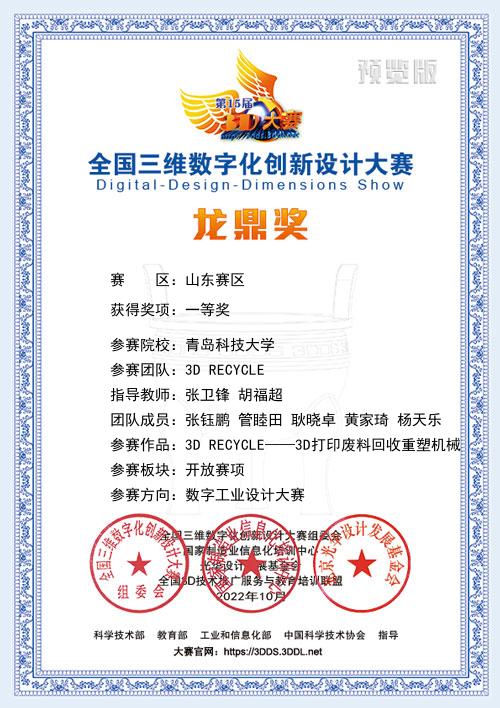 2022,全国三维数字化创新设计大赛 省级一等奖