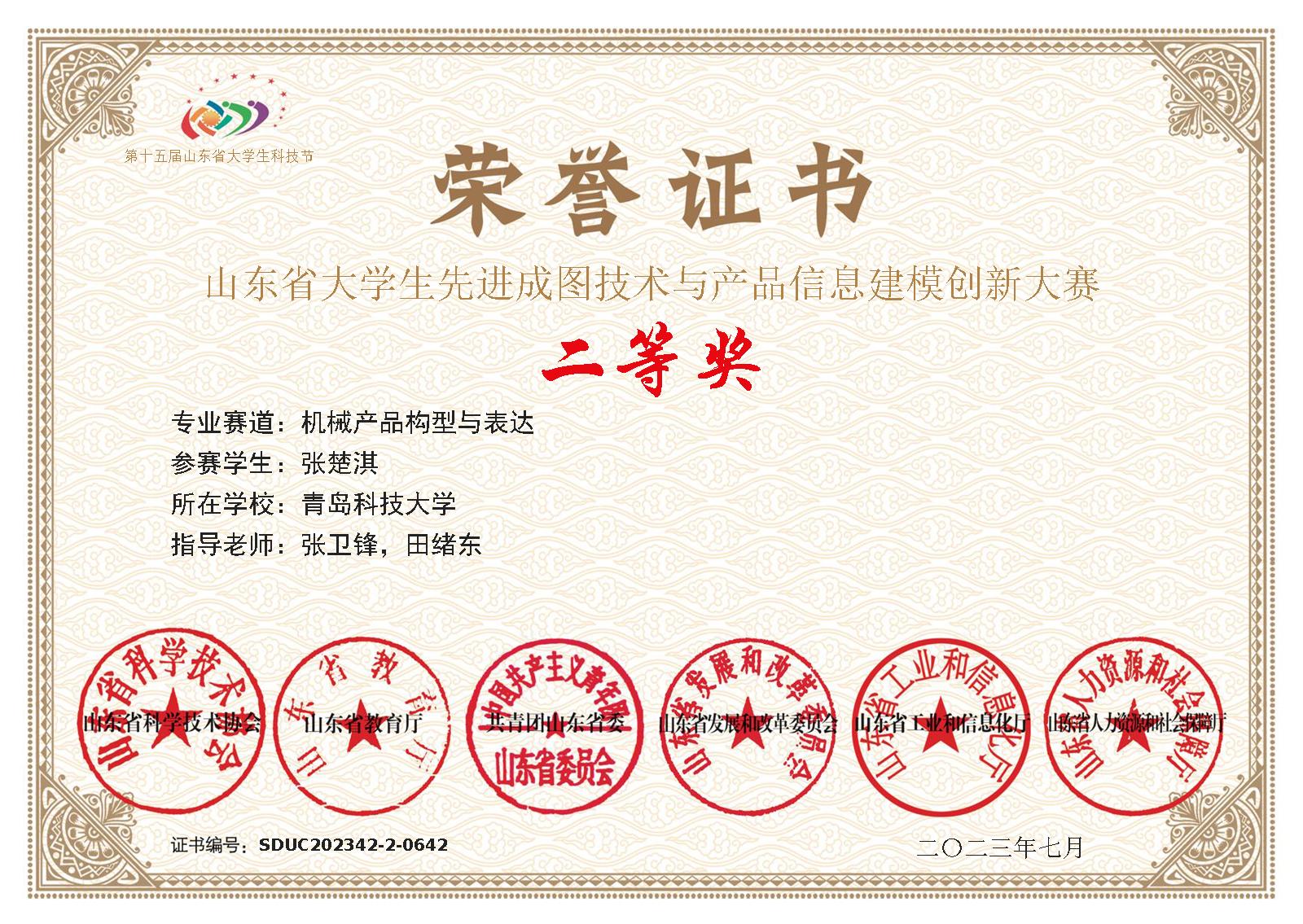 2023,山东省大学生先进成图技术与产品信息建模创新大赛机械产品构型与表达二等奖