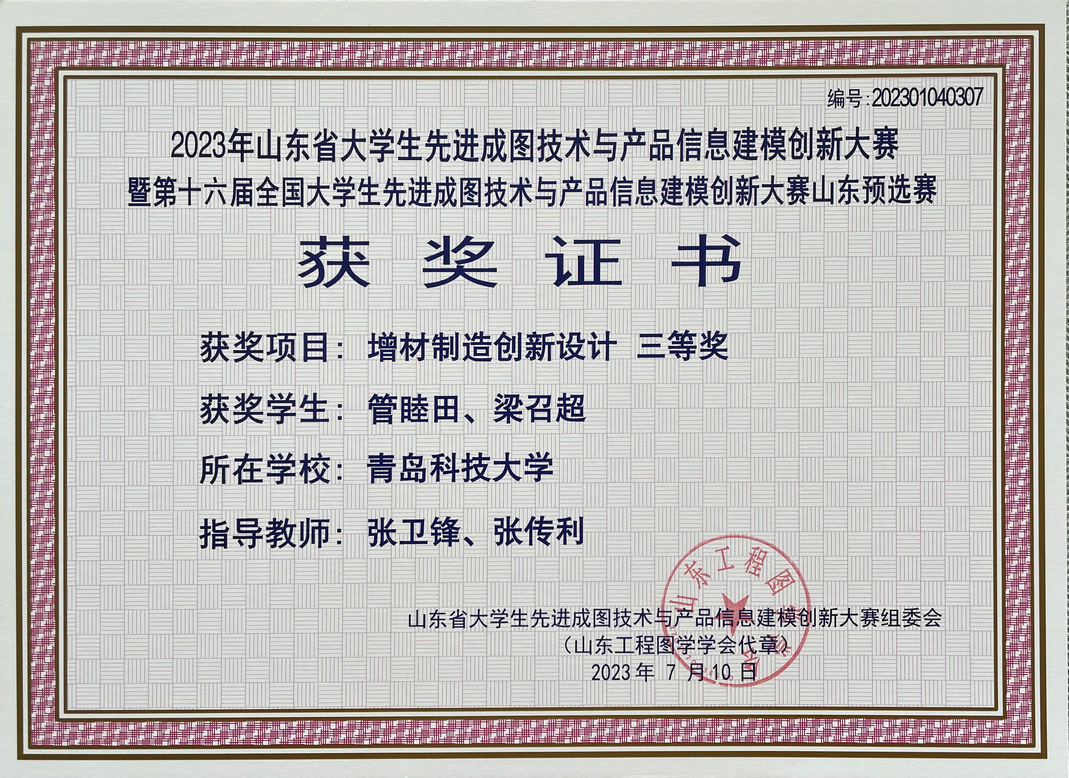 2023,山东省大学生先进成图技术与产品信息建模创新大赛三等奖