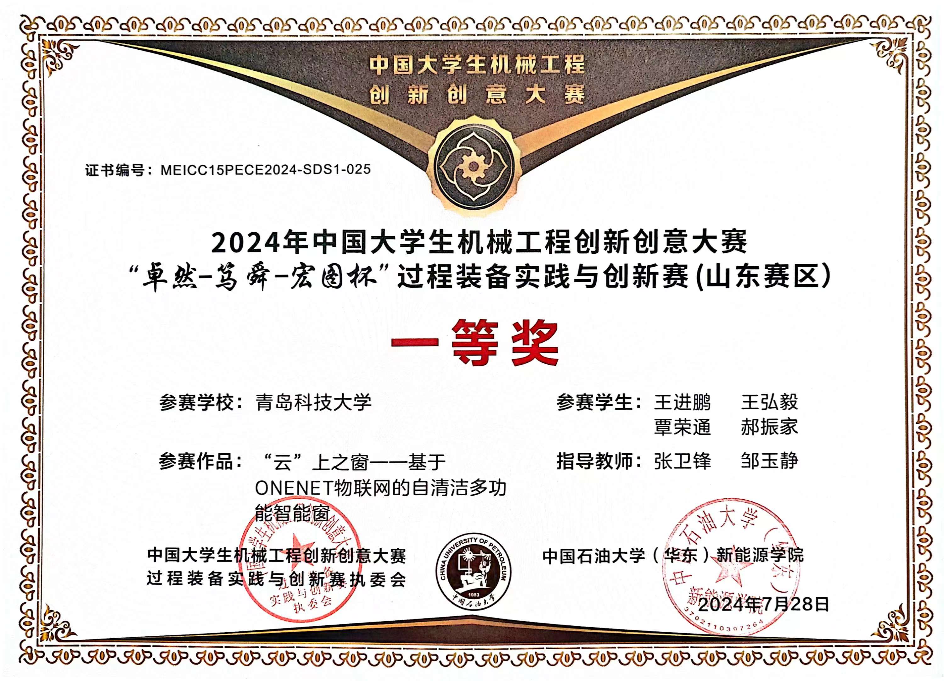 2024,中国大学生机械工程创新大赛一等奖