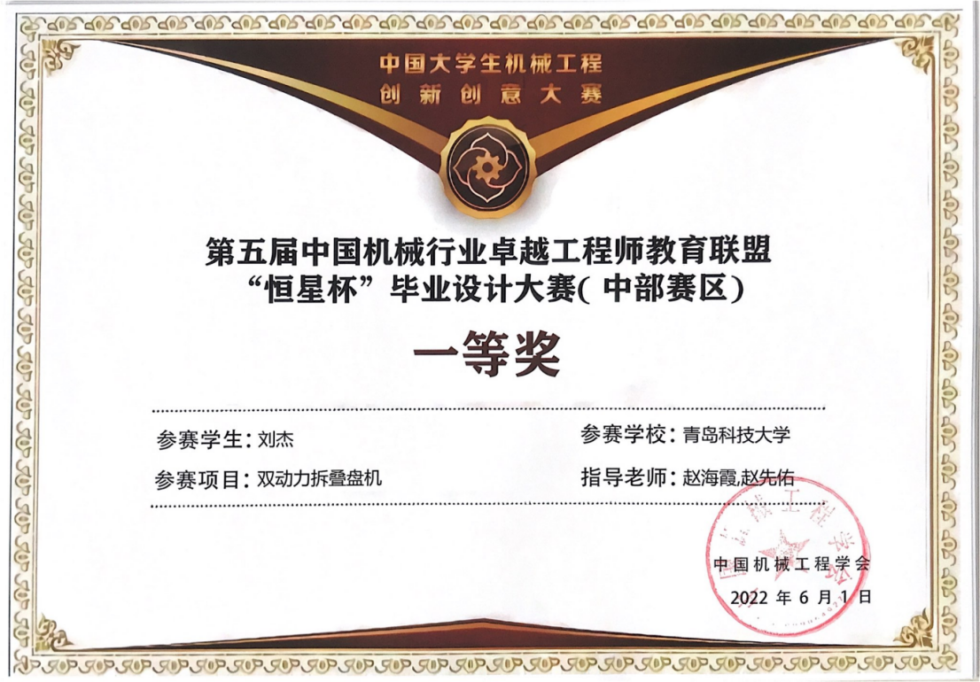 2022,[校企合作]第五届中国机械行业卓越工程师教育联盟“恒星杯”毕业设计大赛一等奖:双动力拆叠盘机