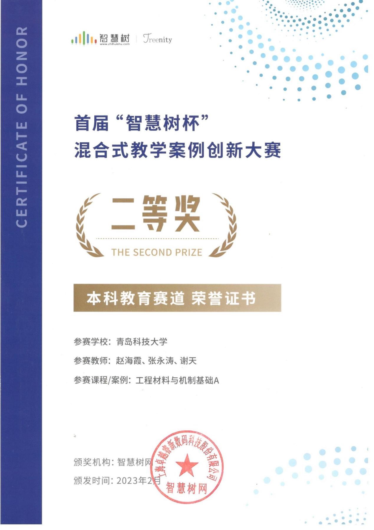 [教研获奖]2022,“智慧树杯”课程思政示范案例教学大赛二等奖:工程材料与机制基础